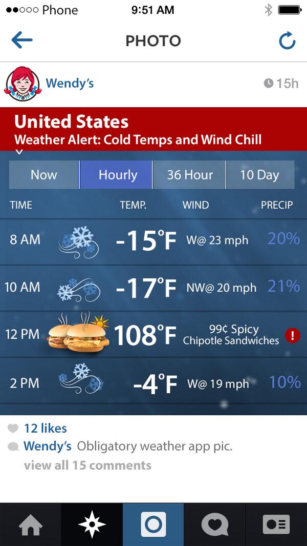 - ¿Mucho frío? La cadena de restaurantes Wendy’s tiene la solución: jugosas y calentitas hamburguesas